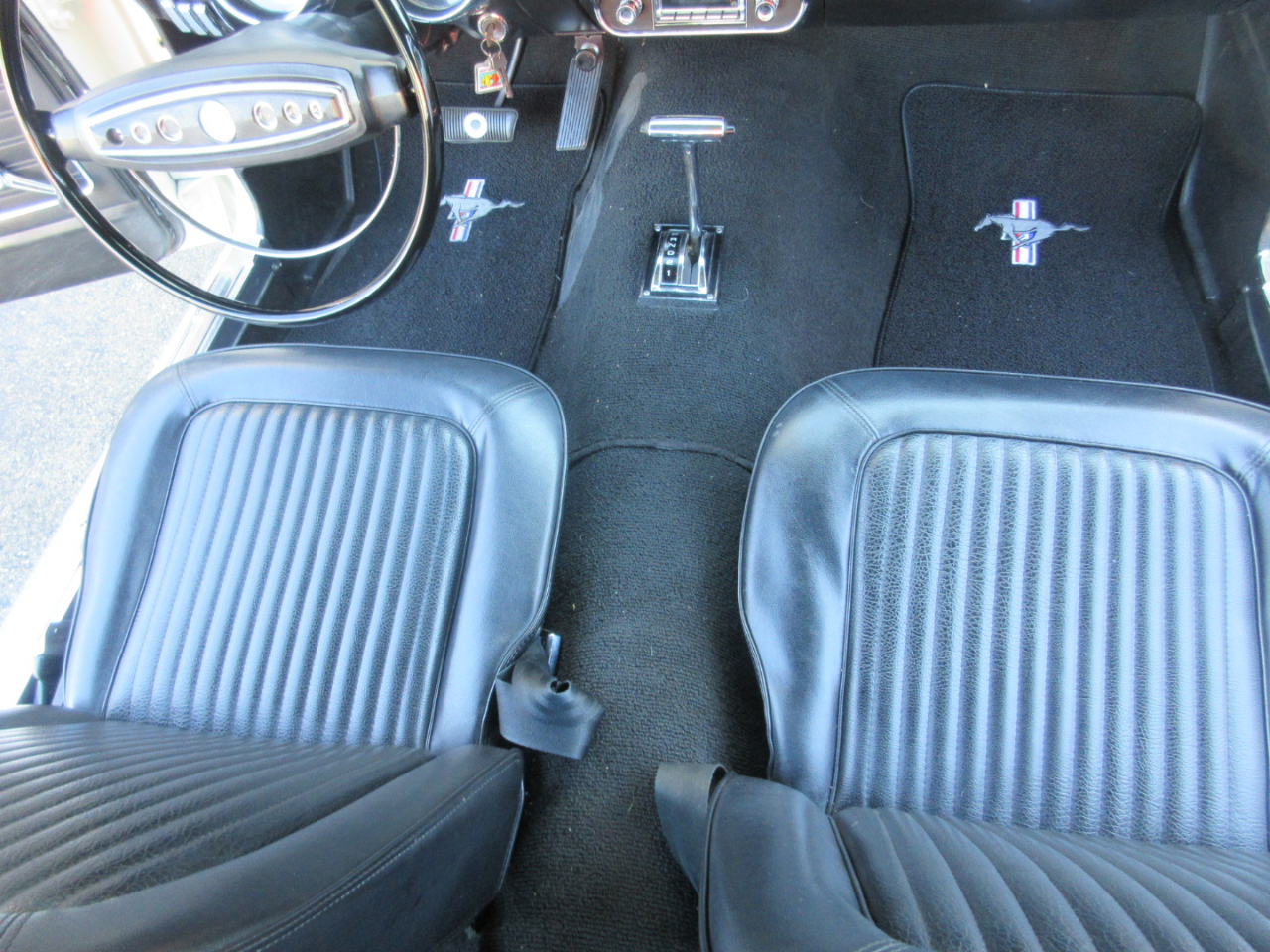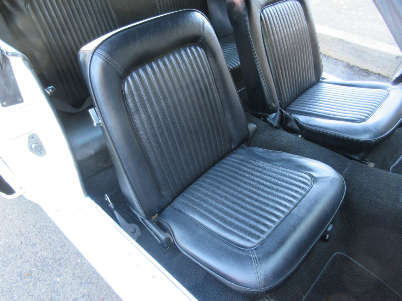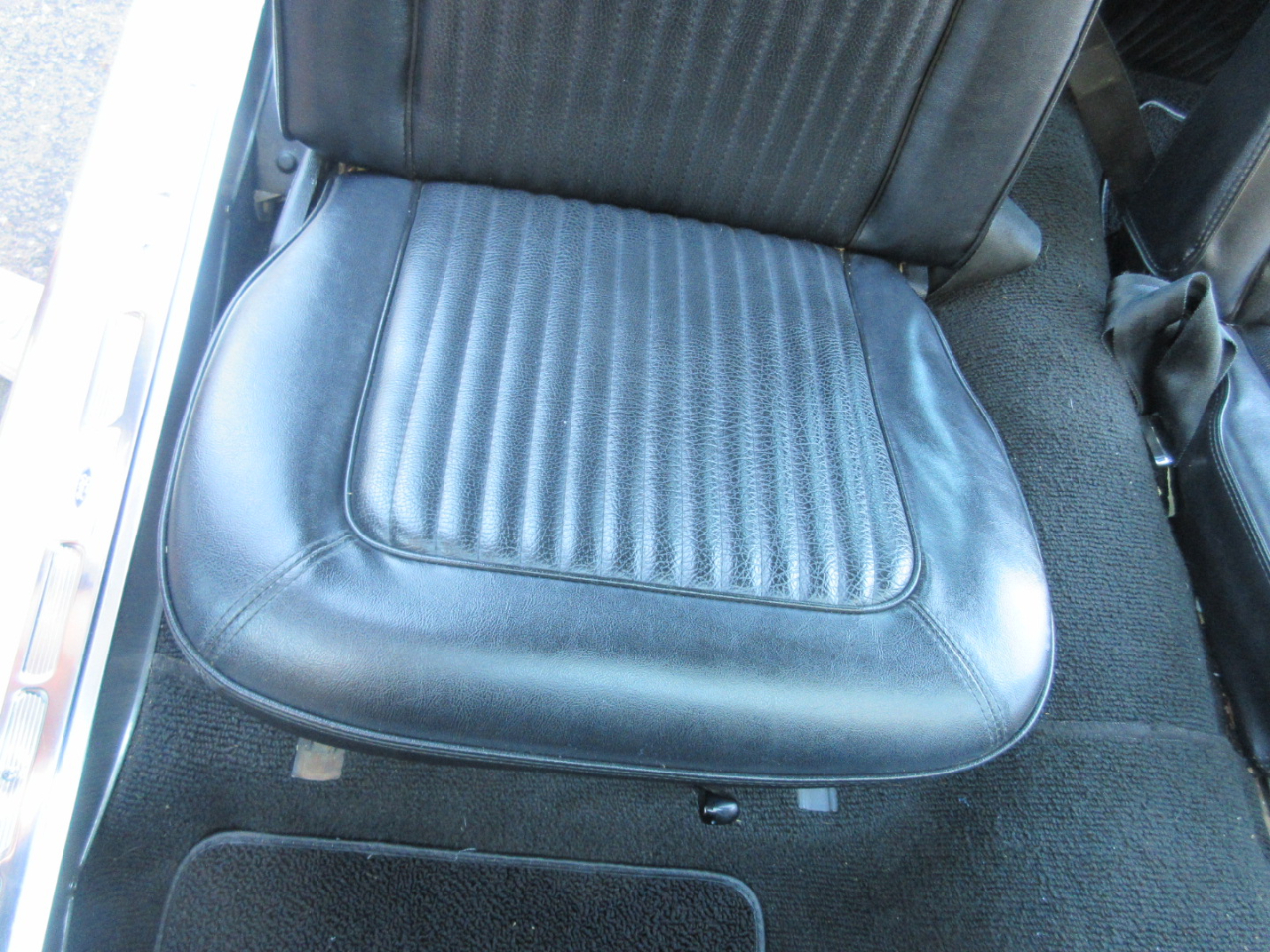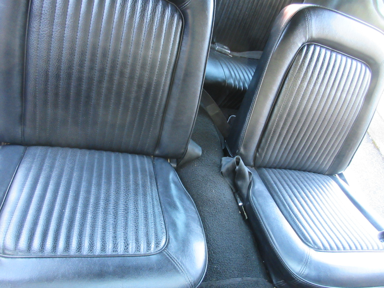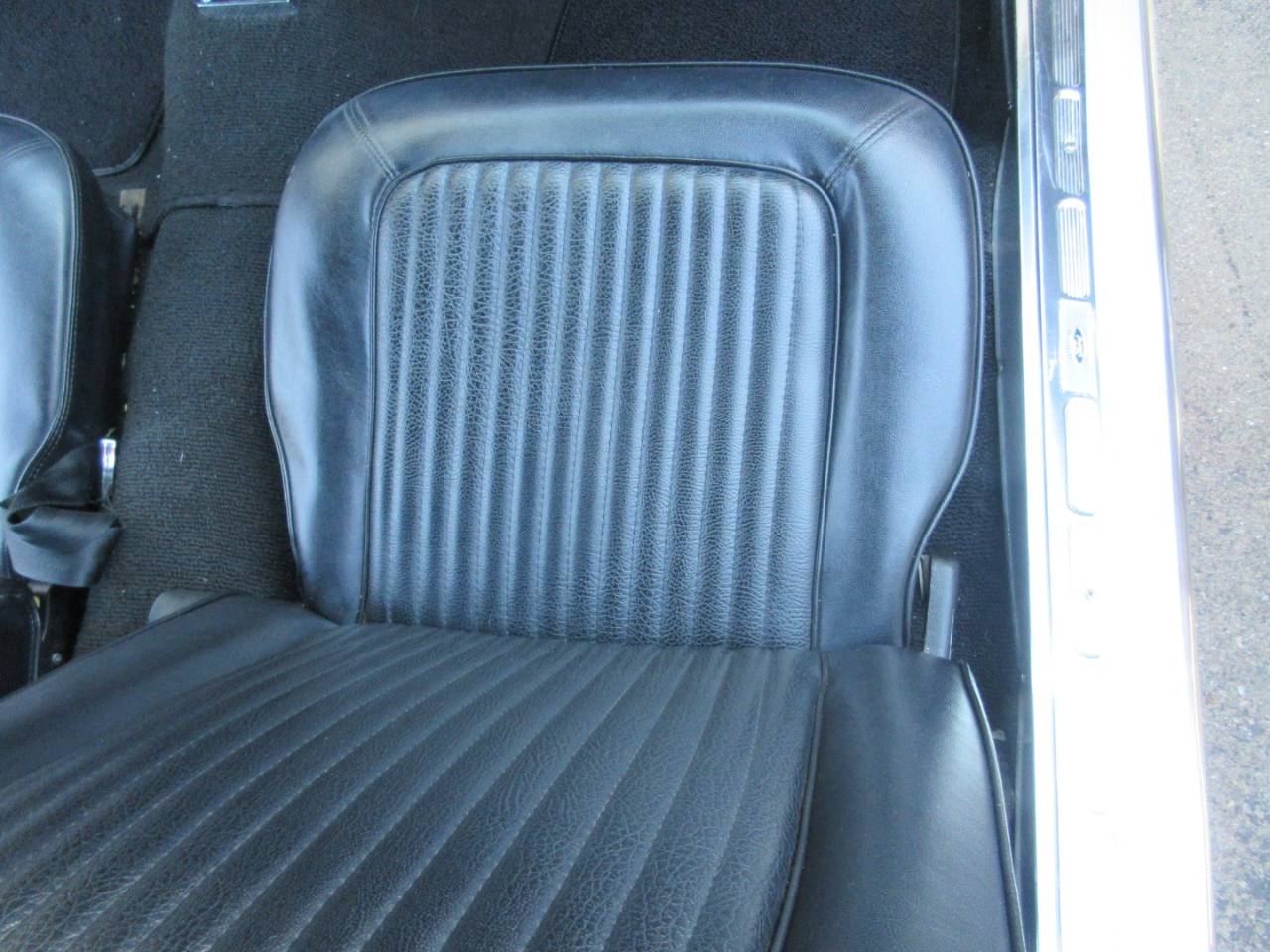 The interior was completely replaced, including the carpet, bucket and rear seats, and headliner.  The radio is a period correct looking radio but is a blue tooth stereo with rear speakers hidden under the rear panel.