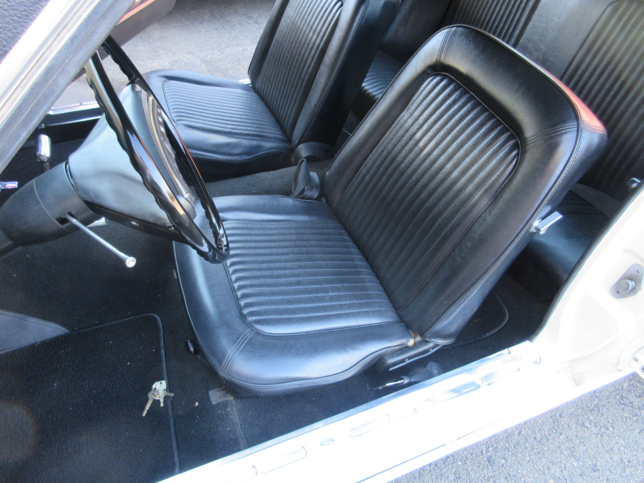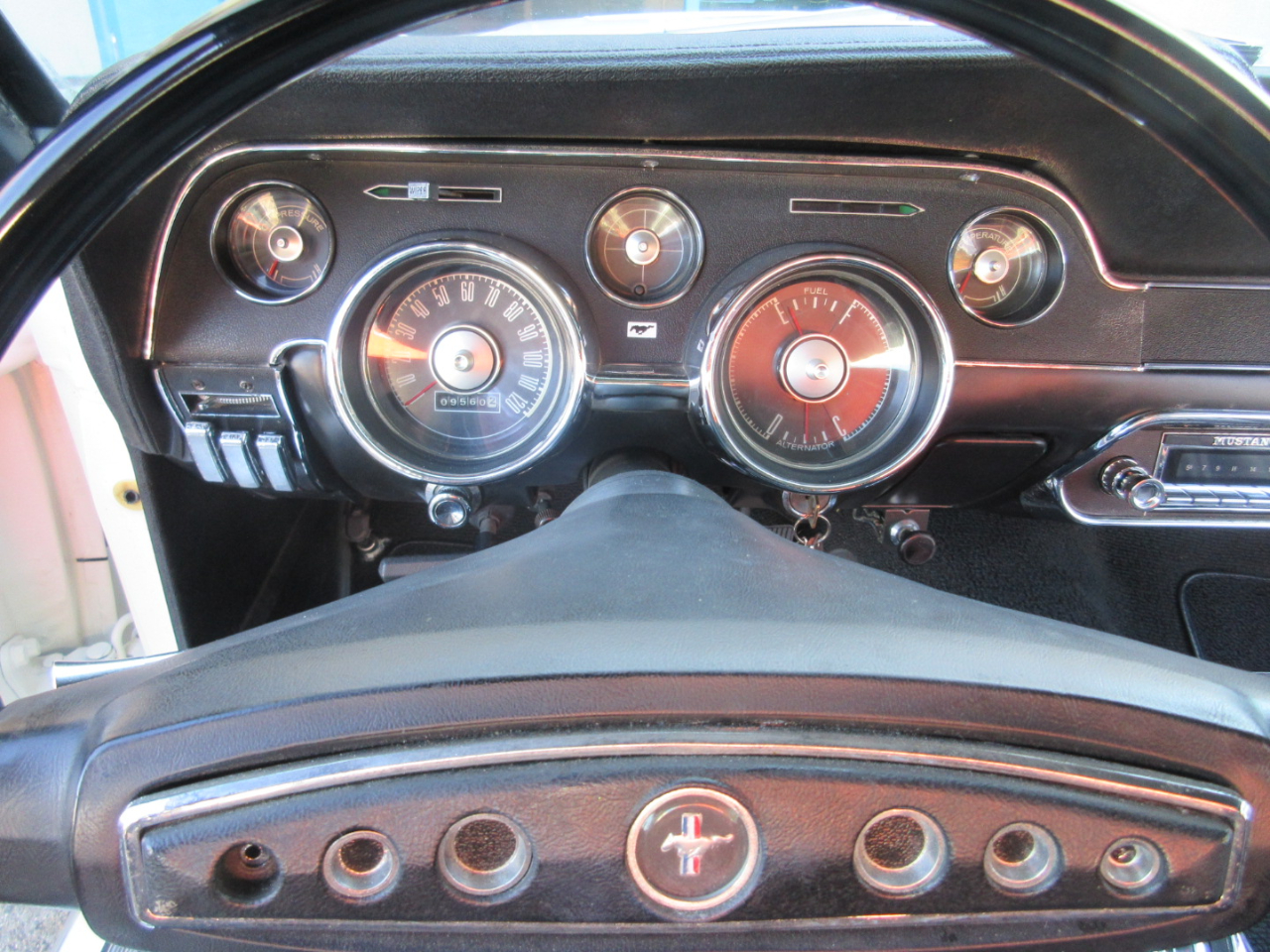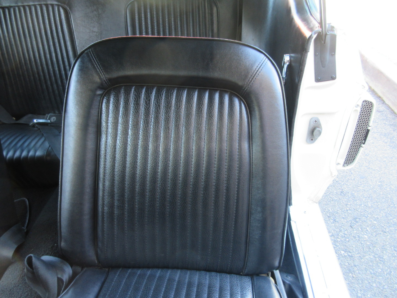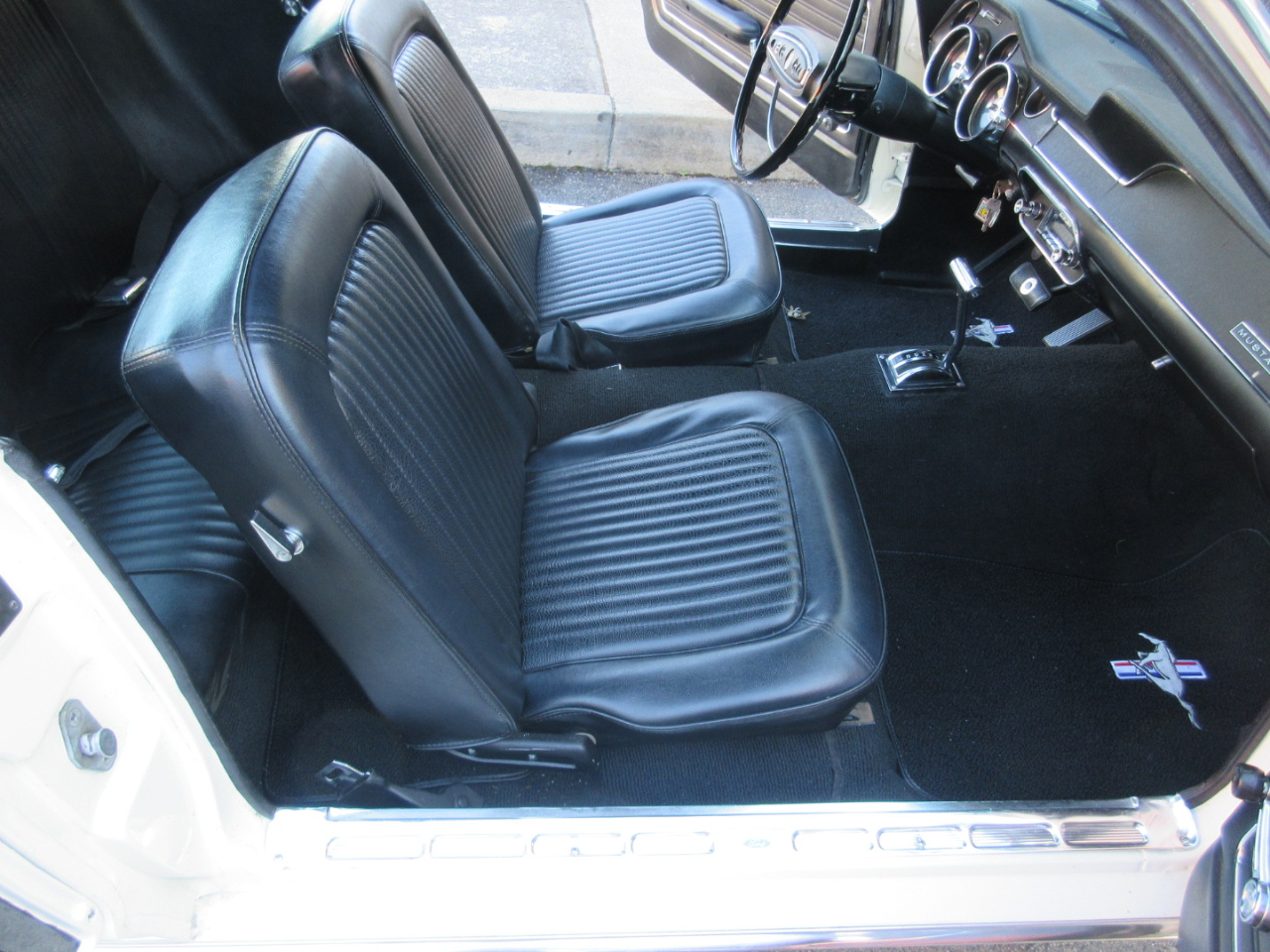 The interior was completely replaced, including the carpet, bucket and rear seats, and headliner.  The radio is a period correct looking radio but is a blue tooth stereo with rear speakers hidden under the rear panel.