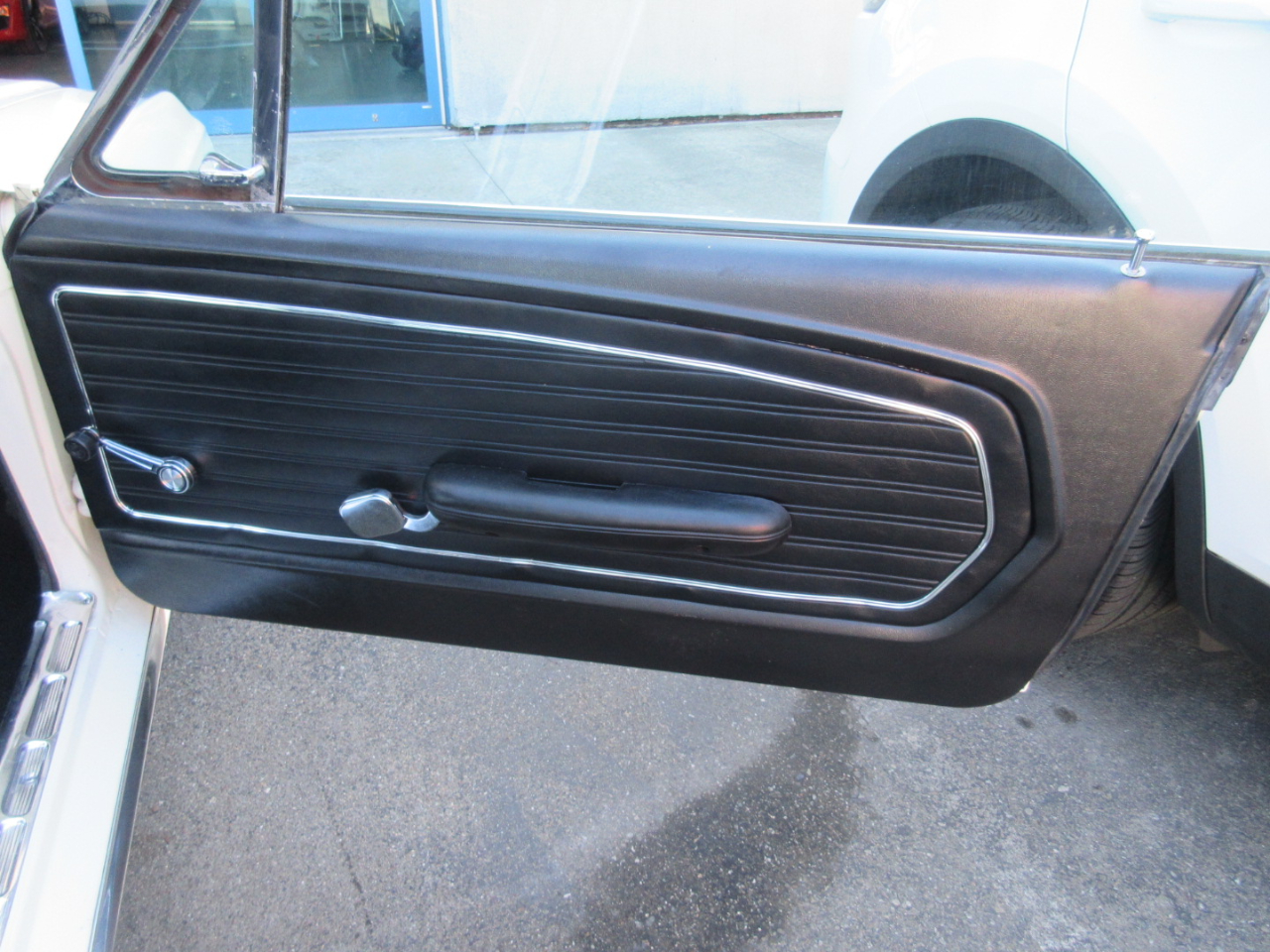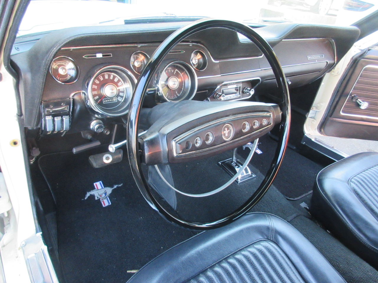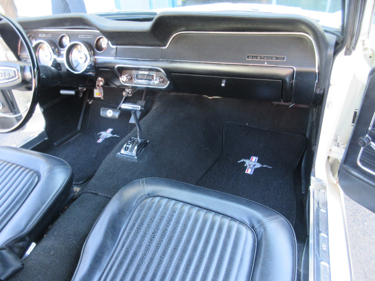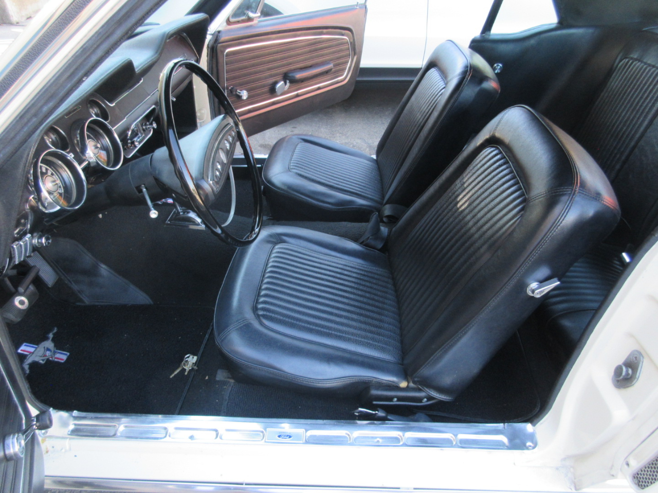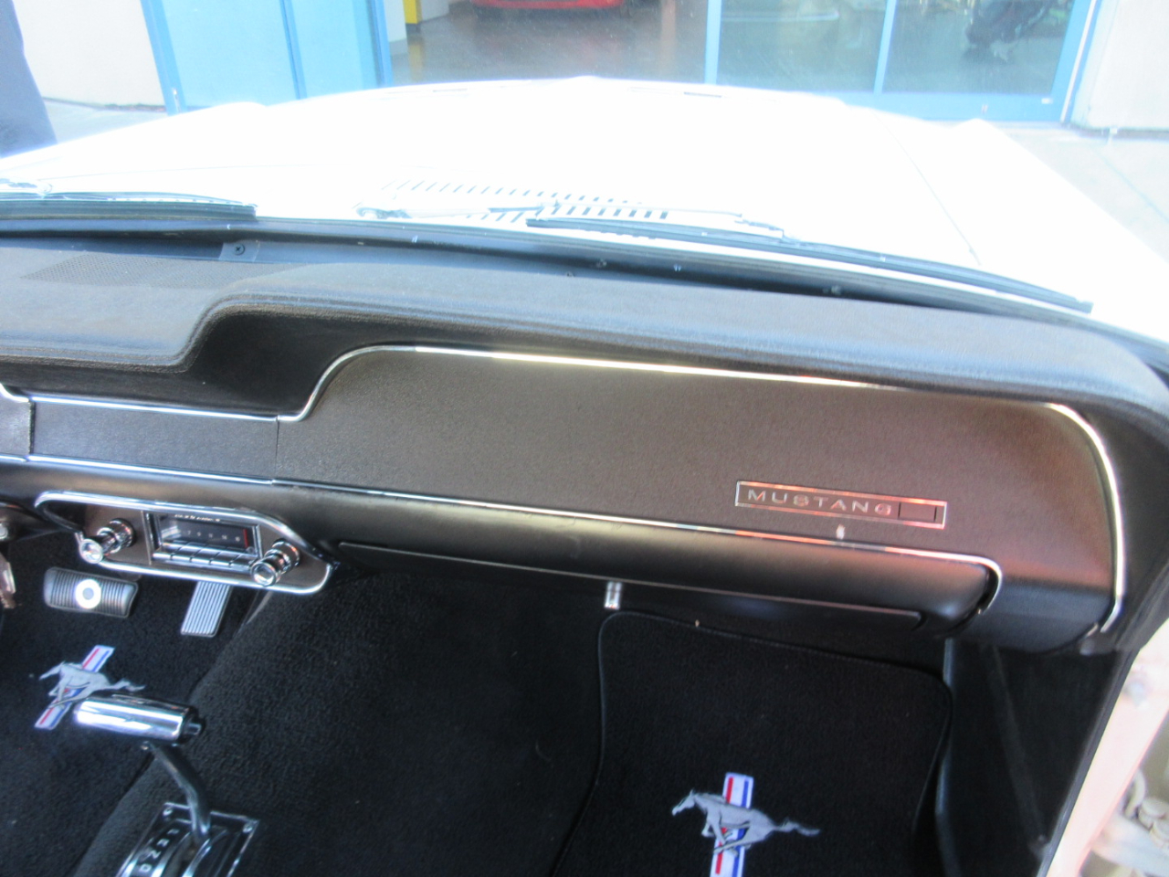 The interior was completely replaced, including the carpet, bucket and rear seats, and headliner.  The radio is a period correct looking radio but is a blue tooth stereo with rear speakers hidden under the rear panel.